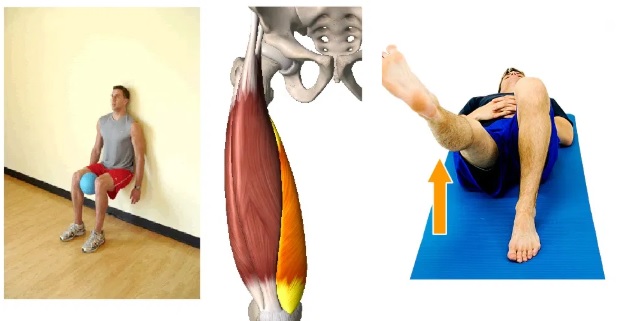 Inner Range VMO Quadriceps Lying: Activates the vastus muscles and significantly reduces the anterior knee pain. Must be performed 10-15s times daily, holding for 2-3 and repeating for 3-10 times.